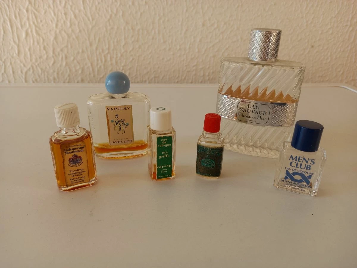 5διαφορα μπουκάλια αρωμάτων οπως του Dior (5ΕΥΡΏ) συν μινιατούρα άρωμα 4711 γεματο (5ΕΥΡΏ) deco του 1940 μπουκαλάκι, made in Germany vintage ολα συλλεκτικά.