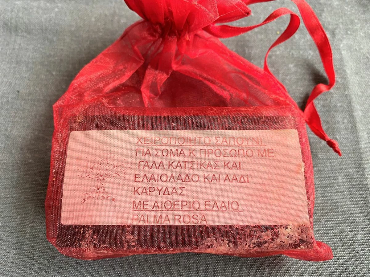 • Χειροποίητο σαπούνι για σώμα και πρόσωπο με γάλα κατσίκας, ελαιόλαδο και λάδι καρύδας με αιθέριο έλαιο palma rosa Βάρος 78 γρ