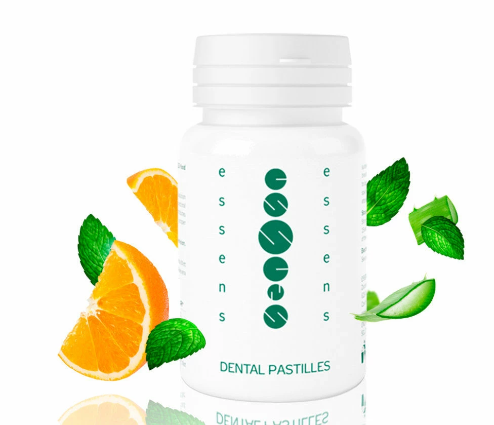 Οι ESSENS Aloe Vera Dental Pastilles είναι ένα συμπλήρωμα διατροφής που προορίζεται για σταδιακή διάλυση στο στόμα, χρησιμεύει ως προσθήκη στην οδοντιατρική και στοματική φροντίδα. Έχουν αντιφλεγμονώδεις και ενυδατικές ιδιότητες και μειώνουν την ανάπτυξη βλαβερών βακτηρίων στο στόμα, καταπολεμούν την κακή αναπνοή και υποστηρίζουν τη σωστή λειτουργία της στοματικής μικροχλωρίδας. Οι παστίλιες δημιουργήθηκαν και παρασκευάζονται υπό φαρμακευτική επίβλεψη, δεν περιέχουν ζάχαρη, γλουτένη ή λακτόζη, είναι απολύτως ασφαλείς και μη εθιστικές.
