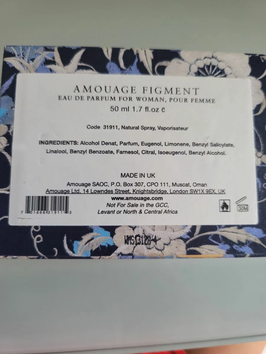 Διατίθεται το Figment Woman από την Amouage 50 ml καινούργιο με έκπτωση 60% . Πρόκειται για ένα μοναδικό Συπρέ Λουλουδένιο άρωμα με φανατικό κοινό. Το Figment Woman κυκλοφόρησε το έτος 2017. Οι νότες κορυφής είναι γαρδένια, πιπέρι σιτσουάν και σαφράν; οι μεσαίες νότες είναι κρίνος, τουμπερόζα, Υλάνγκ Υλάνγκ, γιασεμί, κασσια μπέρμπον και άνθη πορτοκαλιάς; οι νότες της βάσης είναι πάπυρος, ρίζωμα ίριδας, θυμίαμα και πατσουλί.