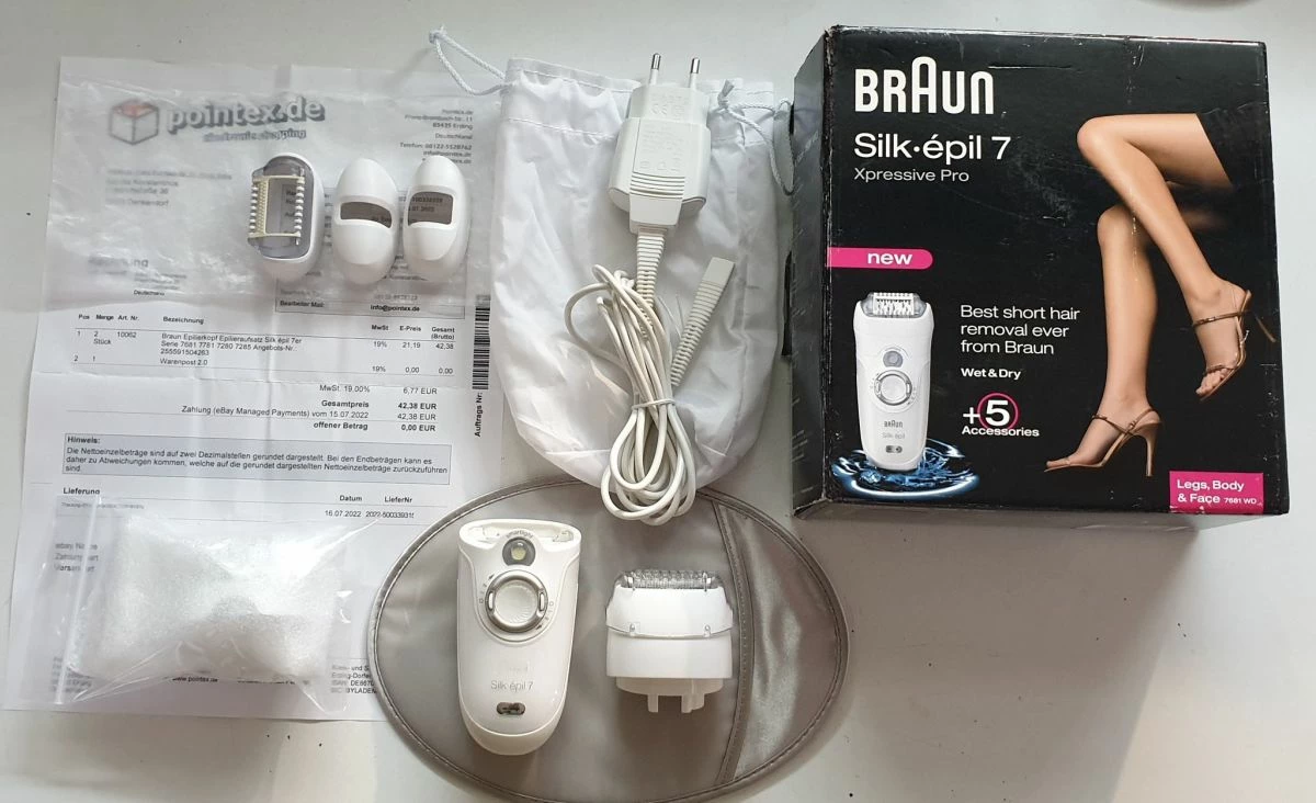 Πωλείται σετ αποτρίχωσης epilator της εταιρείας Braun, σε άριστη κατάσταση, μαζί με ΚΑΙΝΟΥΡΙΑ, ΑΧΡΗΣΙΜΟΠΟΙΗΤΗ ΚΕΦΑΛΗ, (μέσα στο σακουλάκι, όπως φαίνεται στις φωτογραφίες) προσφάτως αγορασμένη από κατάστημα του εξωτερικού (7/2022), όπως φαίνεται και από την φώτο της απόδειξης που επισυνάπτεται. Το κυρίως σώμα της μηχανής χρησιμοποιήθηκε ελάχιστα και έπειτα αποθηκεύτηκε. Συνοδεύεται από τέσσερα επιπλέον αχρησιμοποίητα κομμάτια, τα οποία χρησιμοποιούνται ανάλογα με την περιοχή του σώματος που θα χρειαστεί αποτρίχωση. Επιπλέον συνοδεύεται από το τροφοδοτικό της, από τις οδηγίες χρήσης και την αρχική συσκευασία της. Μαζί θα αποσταλεί και η παλιά κεφαλή αποστειρωμένη, για το λόγο και μόνο, να χρησιμοποιηθεί σαν ανταλλακτικά. Τιμή αγοράς της συγκεκριμένης μηχανής 116 ευρώ.