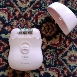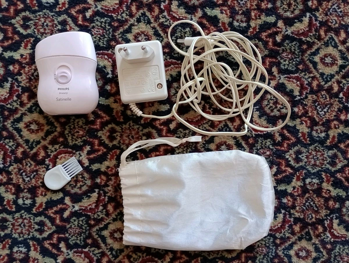 Συσκευη για αποτριχωση Philips Beauty Satinelle, διαστασεις 9εκ x 7εκ x 2εκ, σε αριστη κατασταση. Η συσκευη λειτουργει με τροφοδοσια ρευματος. Πωλειται μαζι με μετασχηματιστη και καλωδιο τροφοδοσιας, θηκη και βουρτσακι για καθαρισμα της συσκευης.