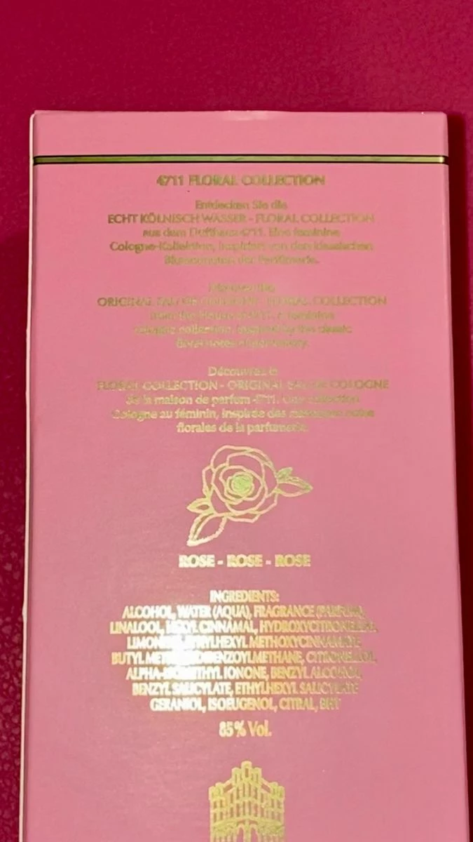 4711 Rose Eau de Cologne από 4711 είναι ένα Μοσχος Ξυλώδη Λουλουδενιο άρωμα.Οι νότες κορυφής είναι πράσινο τσάι, Περγαμόντο και Μανταριν ορανζ; οι μεσαίες νότες είναι τριαντάφυλλο, φρέζια και Βιολέτα; οι νότες της βάσης είναι Μόσχος και σανδαλόξυλο.
