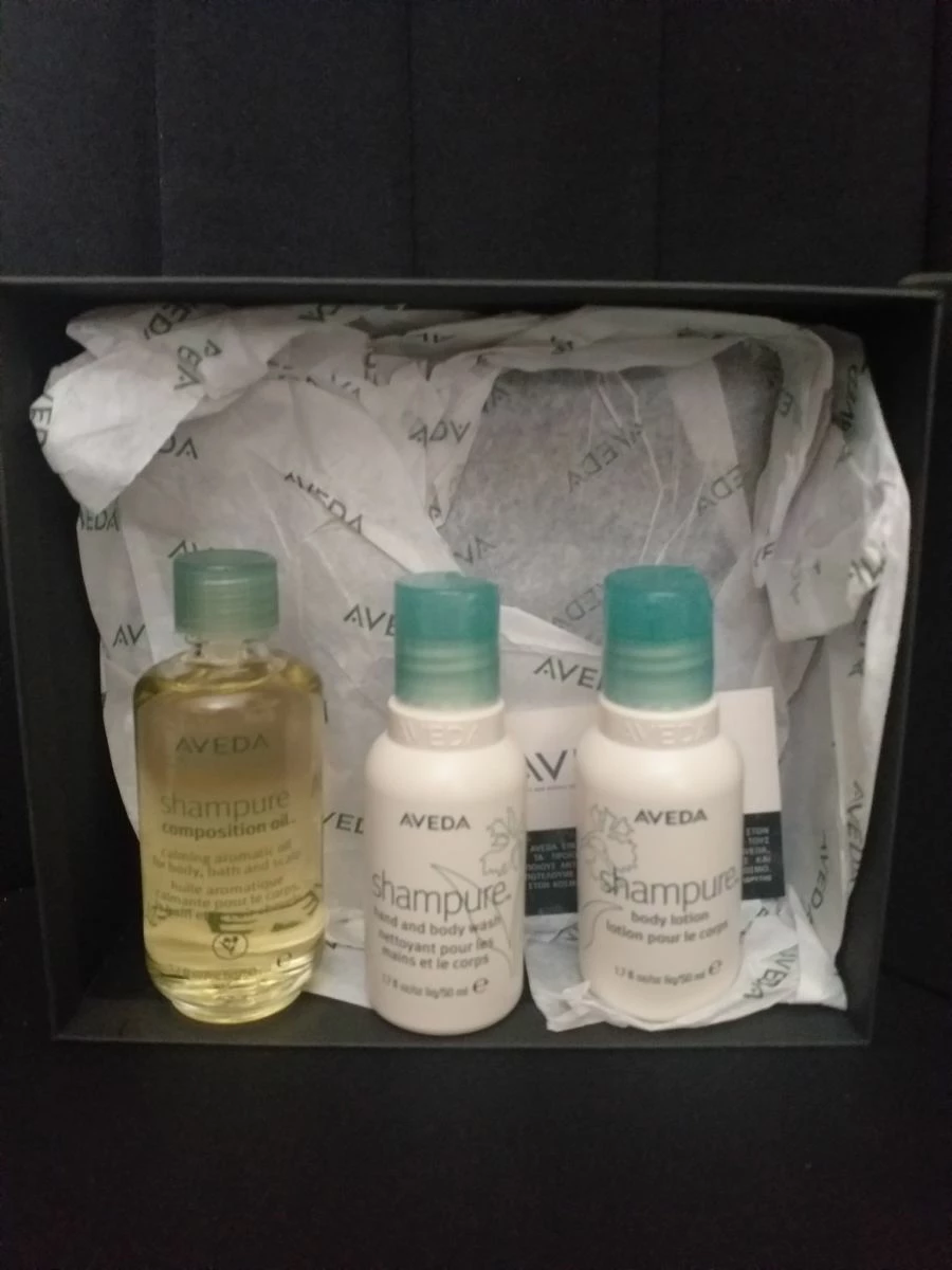 Σετ ταξιδιου της AVEDA, σαμπουαν 50ml, αφρολουτρο 50ml, λαδι 50ml. Καινουριο στη συσκευασια τους. Υπεροχο αρωμα. Aρχικη τιμη 30€
