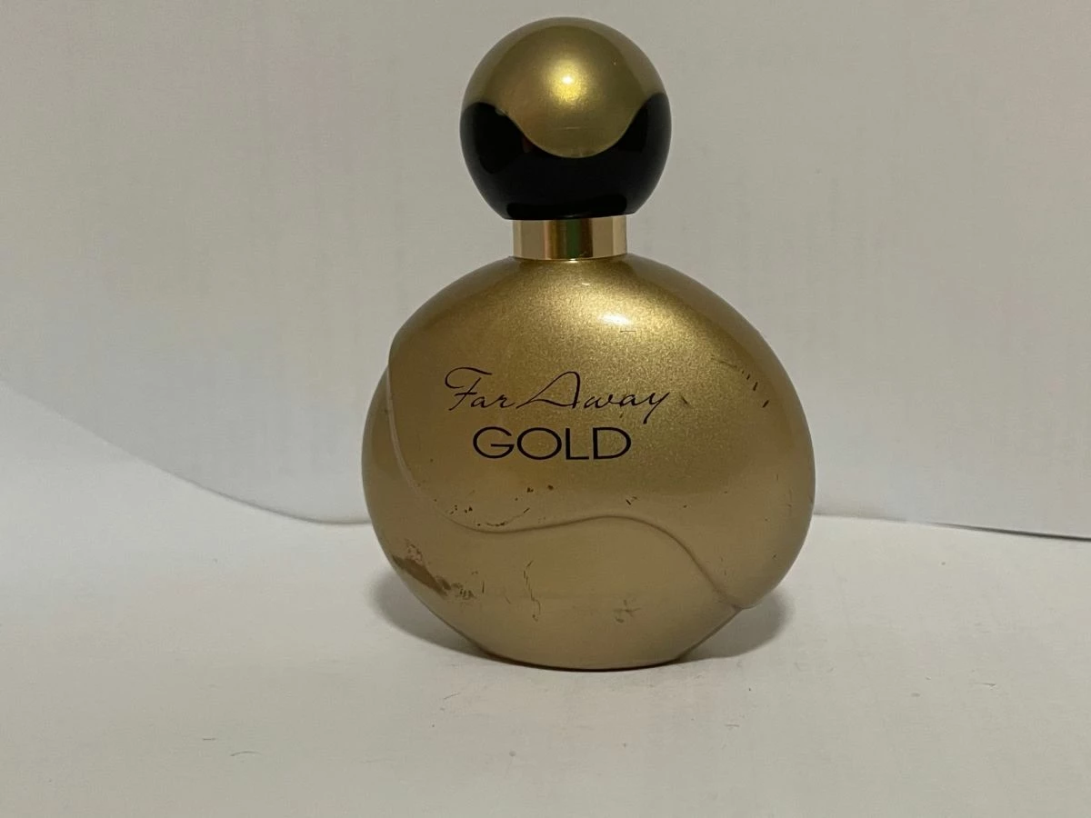 Avon far away gold είναι ένα Αμπερι Λουλουδενιο άρωμα για γυναίκες,έχει 40 ,45 μλ. Οι νότες κορυφής είναι ροδάκινο, Oσμανθός και φρέζια; οι μεσαίες νότες είναι Υλάνγκ Υλάνγκ, Ινδικό γιασεμί και άνθη πορτοκαλιάς; οι νότες της βάσης είναι Βανίλια Μαδαγασκάρης, Κεχριμπάρι και σανδαλόξυλο.