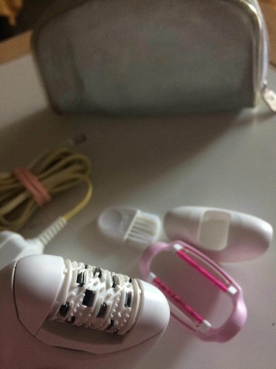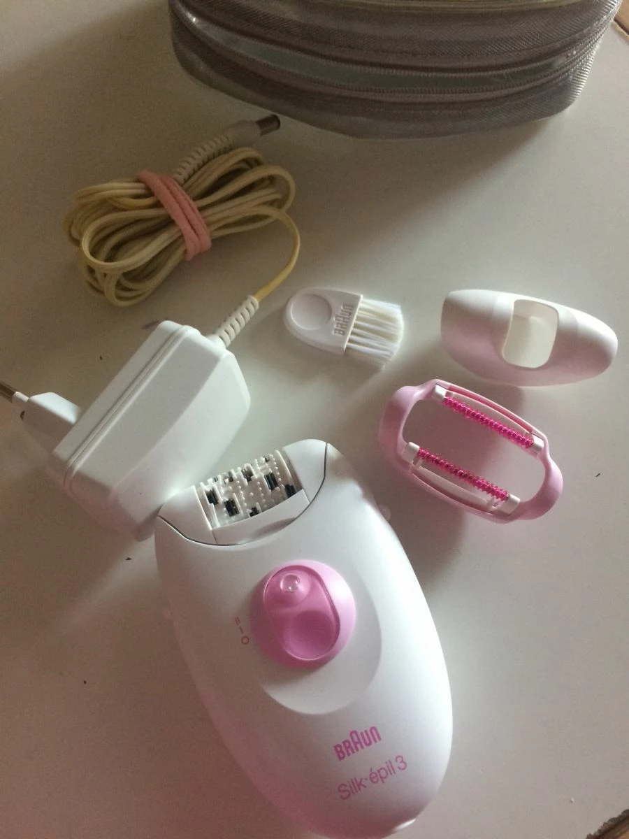 Μεταχειρισμένη αποτριχωτική μηχανή Silk epil της Braun, σε άριστη κατάσταση, με το τσαντάκι μεταφοράς και όλα τα παρελκόμενα τα οποία είναι βουρτσάκι καθαρισμού, κεφαλή με δοντάκια που προετοιμάζουν το δέρμα με μασάζ για λιγότερο πόνο, κεφαλή για μικρή περιοχή πχ μασχάλες και καλώδιο. Αγορασμένη 69€.