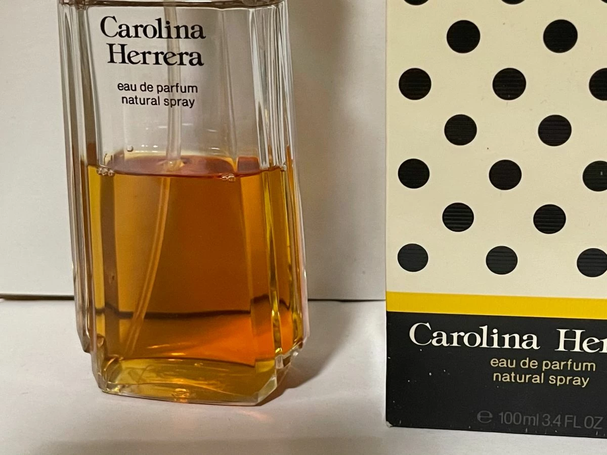 Carolina Herrera by Carolina Herrera eau de parfum 100ml.Ένα πολύ vintage και σπάνιο αρωμα για γυναικες,στο κουτί του σε τέλεια κατάσταση,όπως βλέπετε στις φωτογραφίες. Οι νότες κορυφής είναι Βερίκοκο, άνθη πορτοκαλιάς, νότες πρασίνου, Ροδόξυλο Βραζιλίας και Περγαμόντο; οι μεσαίες νότες είναι τεμπέρι Ινδίας, γιασεμί, γιασεμί Ισπανίας, Υλάνγκ Υλάνγκ, αγιόκλημα, νάρκισσος, υάκυνθος και κρίνο της κοιλάδας; οι νότες της βάσης είναι μοσχογαλή, Μόσχος, βρύα δρυός, σανδαλόξυλο, Κεχριμπάρι, Βέτιβερ και Κέδρος.