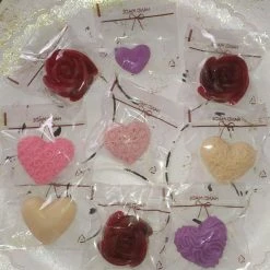 (το σχήμα καρδιάς είναι στα 24γρ. περίπου το καθένα εκτός από τη μια μικρή μωβ καρδιά που είναι στα 6γρ. και τα τριαντάφυλλα είναι στα 45γρ. περίπου το καθένα)