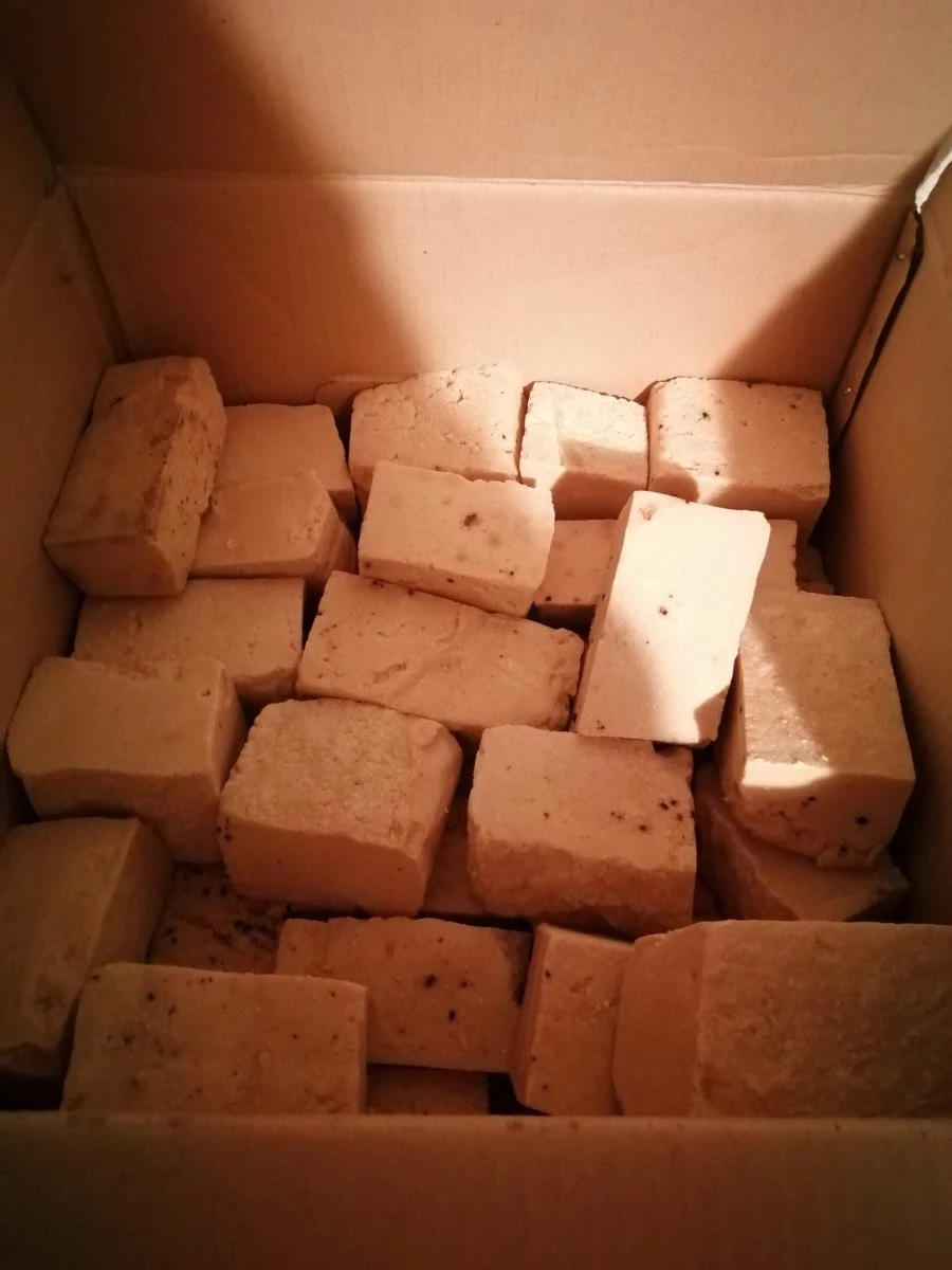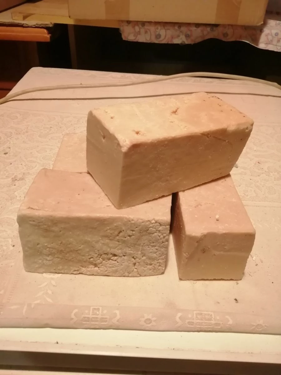 Χειροποίητο ντόπιο σαπούνι με αγνό ελαιόλαδο (3€ το τεμάχιο [περίπου 400-500 γρ. το κάθε τεμάχιο] ).