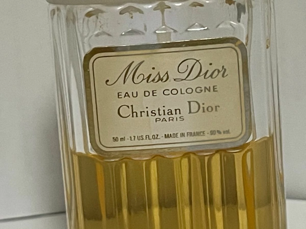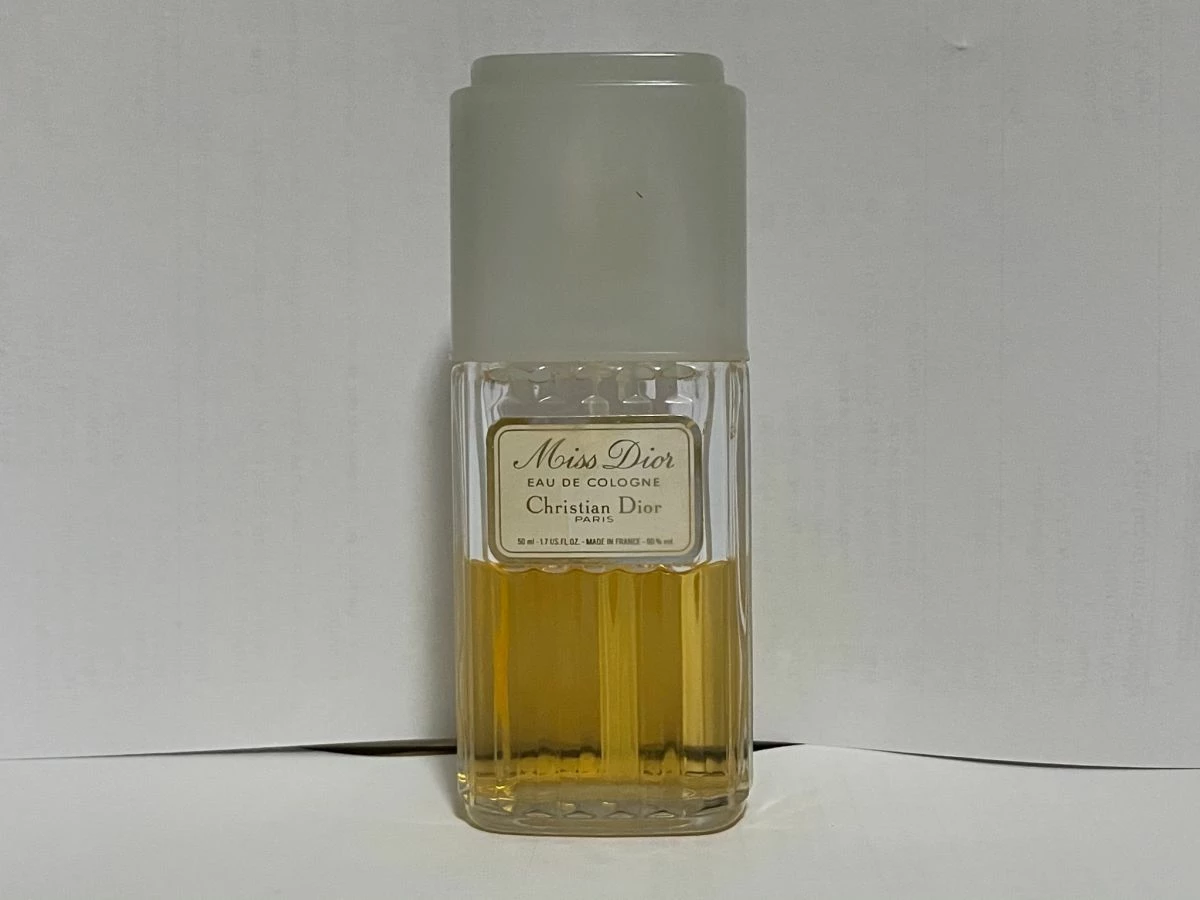 Christian Dior Miss Dior eau de cologne 50μλ.Vintage συπρε λουλουδένιο αρωμα για γυναικες. Οι νότες κορυφής είναι Αλδεΰδες, γάλβανο, φασκόμηλο, γαρδένια και Περγαμόντο; οι μεσαίες νότες είναι νάρκισσος, ίριδα, Γαρύφαλλο, ρίζωμα ίρις, κρίνο της κοιλάδας, γιασεμί, τριαντάφυλλο και νερόλι; οι νότες της βάσης είναι βρύα δρυός, δέρμα, Βέτιβερ, πατσουλί, λάβδανο, σανδαλόξυλο και Κεχριμπάρι.