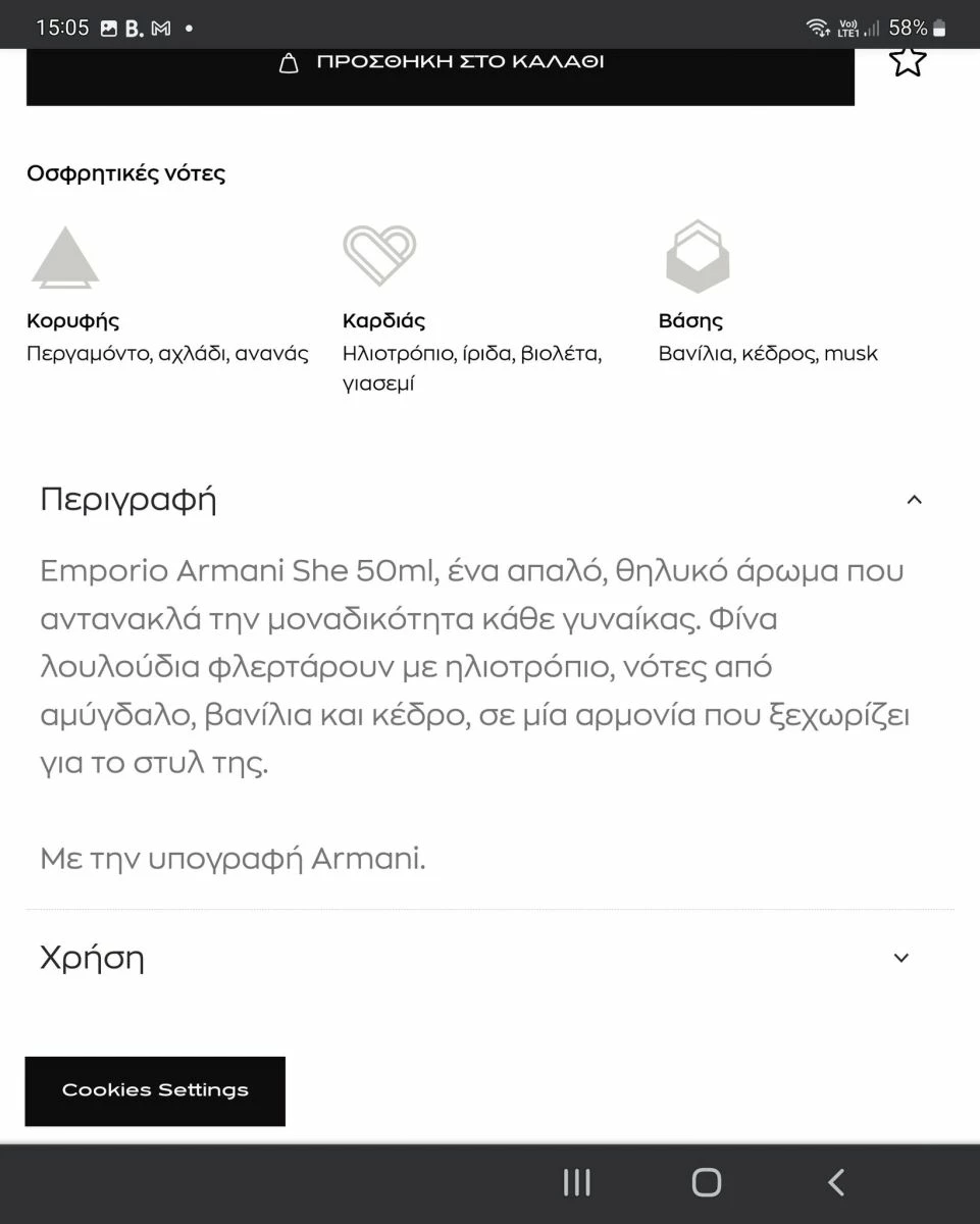 Η δημοφιλής EMPORIO ARMANI SHE 50 ml full, στη μισή τιμή της αγοράς της από το Attica, που ήταν 77 €.