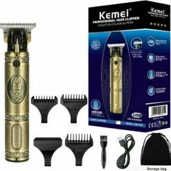 Ξυριστική-κουρευτική μηχανή και trimmer Kemei, με ιδιαίτερο design, λεπίδα ακριβείας από ανθρακούχο χάλυβα και τεχνολογία προσαρμογής στις καμπύλες του προσώπου.