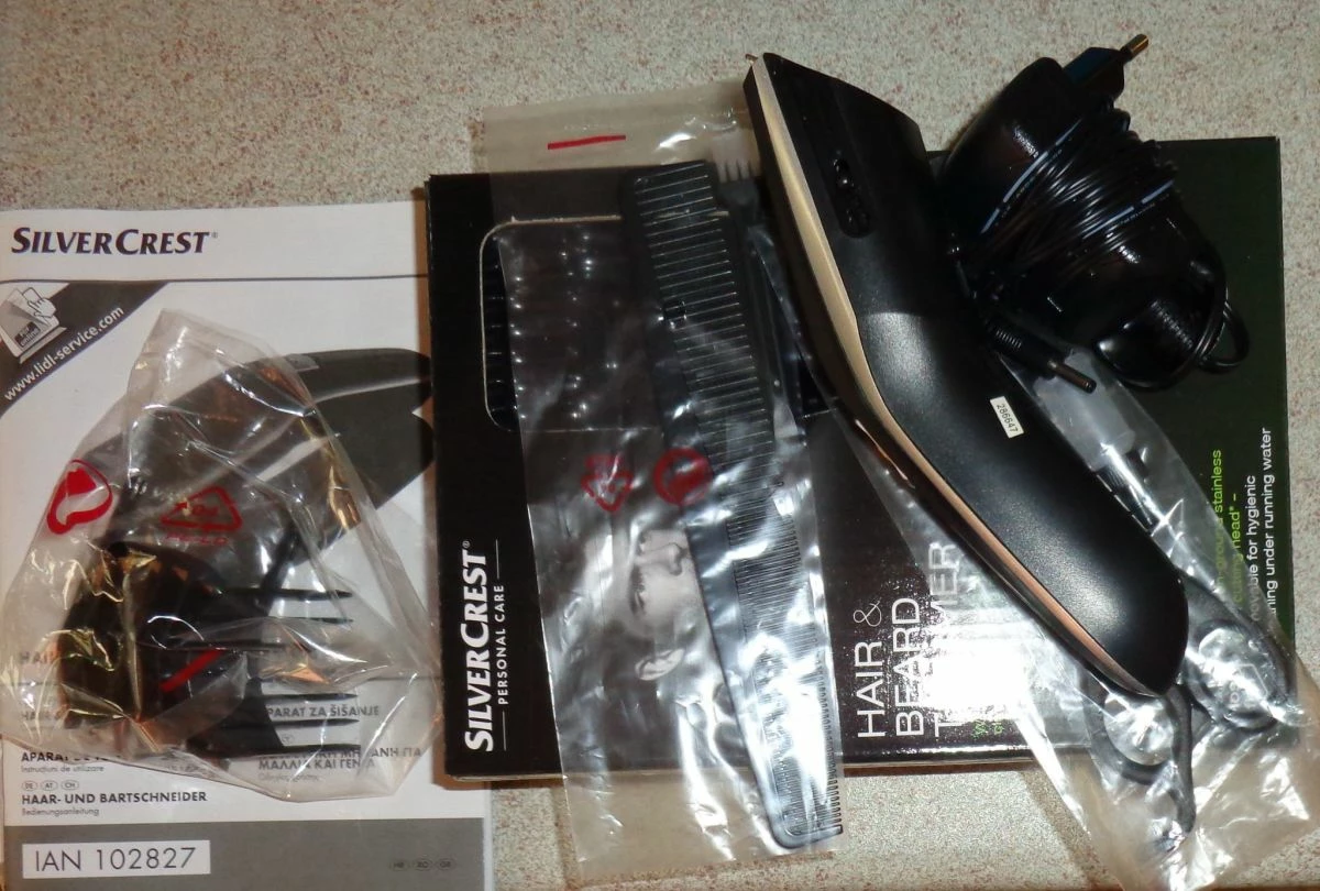 Επαναφορτιζόμενη μαύρη κουρευτική μηχανή για μαλλιά και γένια σε άριστη κατάσταση, αχρησιμοποίητη πλήρες σετ, στο κουτί της. Οδηγίες σε πολλές γλώσσες και στα ελληνικά.